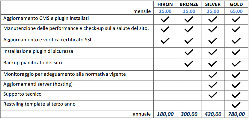 Manuntenere il sito in maniera ciclica; aggiornamento del CMS e dei plugin che lo compongono.